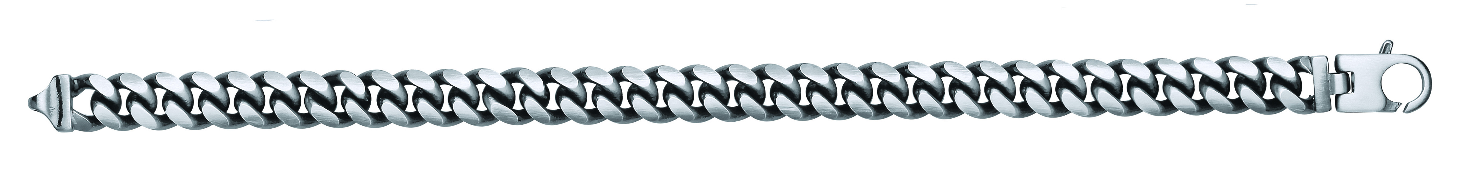 Silver Gents 8.5" Black Rhodium Brushed Curb Bracelet