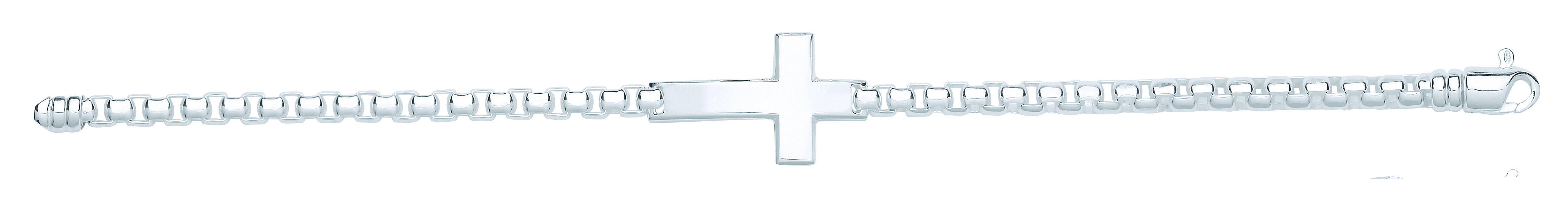 Silver Gents 8.5" Box Belcher Bracelet With Cross