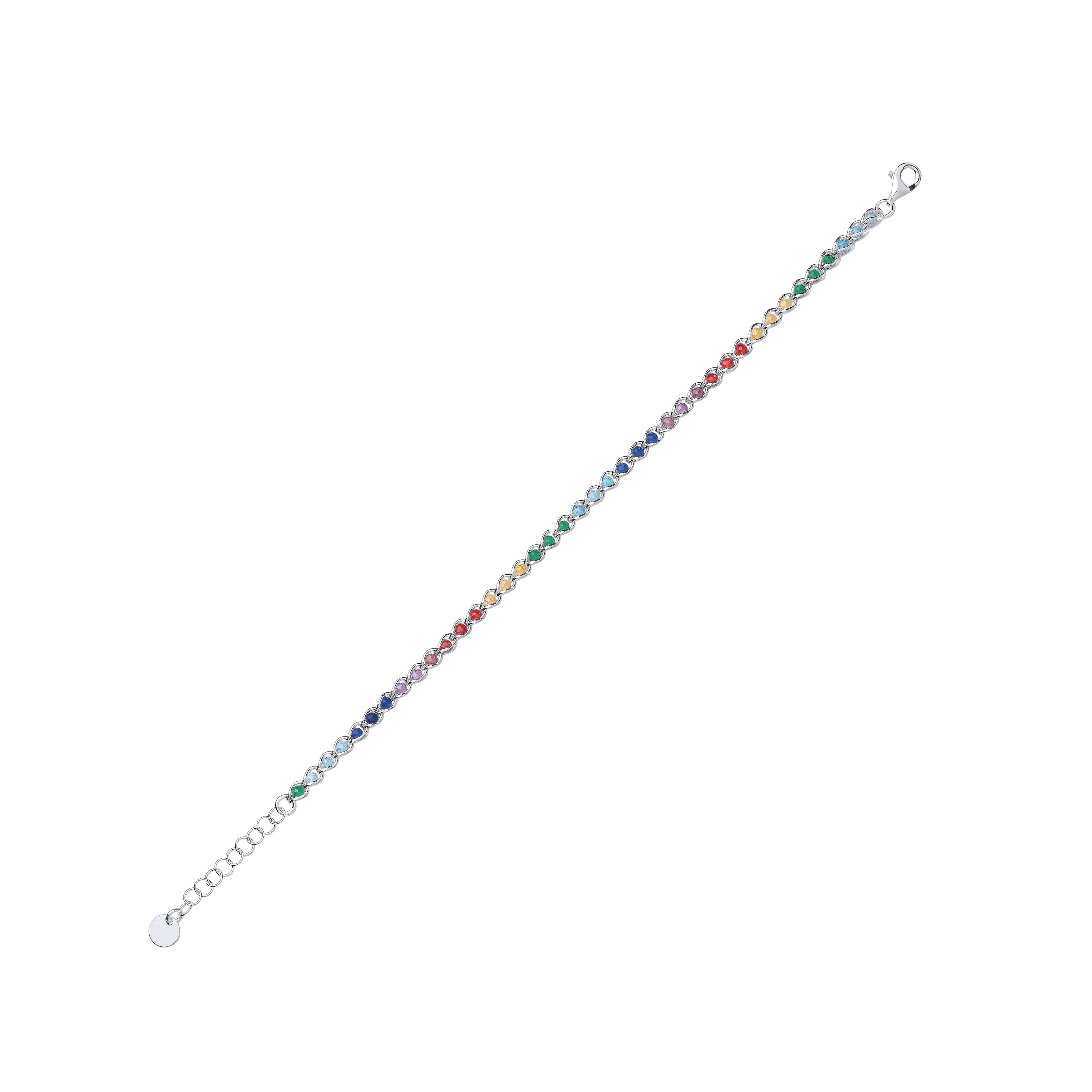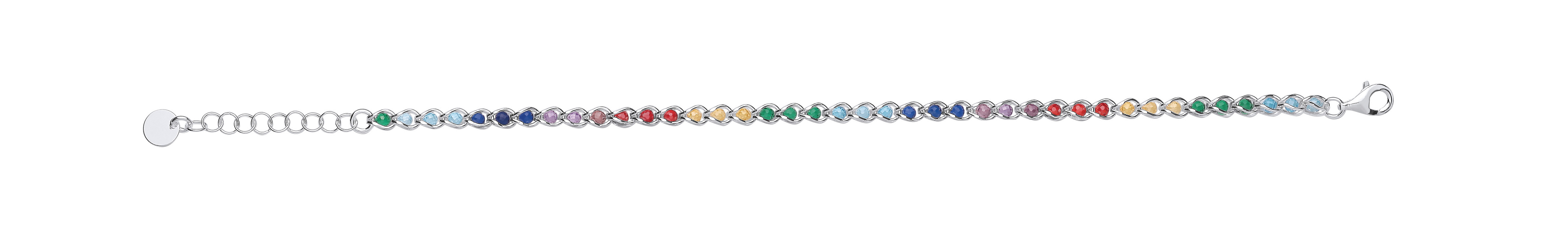 Silver Multicolour CZ Beaded Hoop Link 7.5" Bracelet