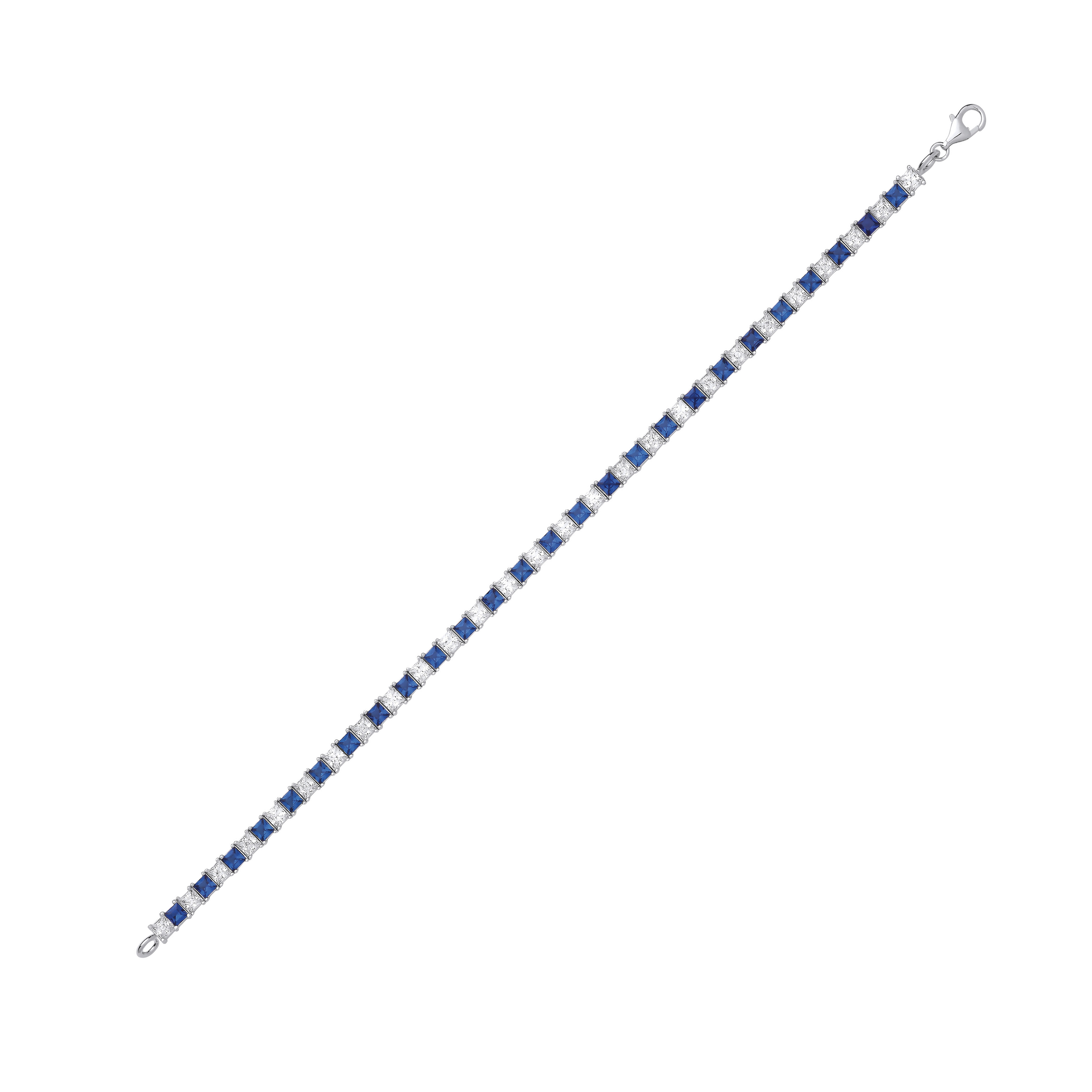 Silver CZ & Sapphire Square Cut Tennis Bracelet