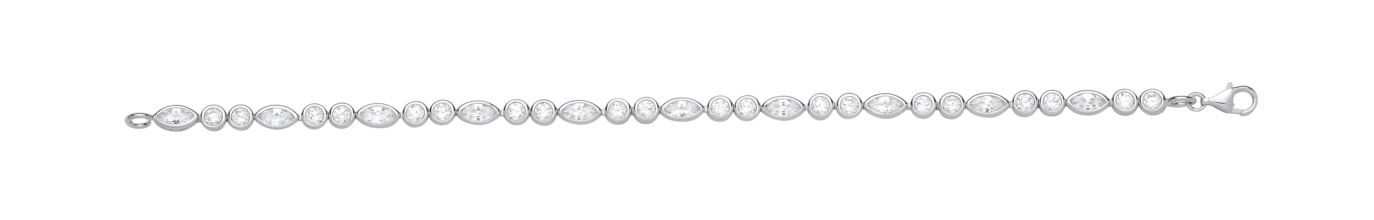 Silver CZ Round & Marquise Rubover Tennis Bracelet
