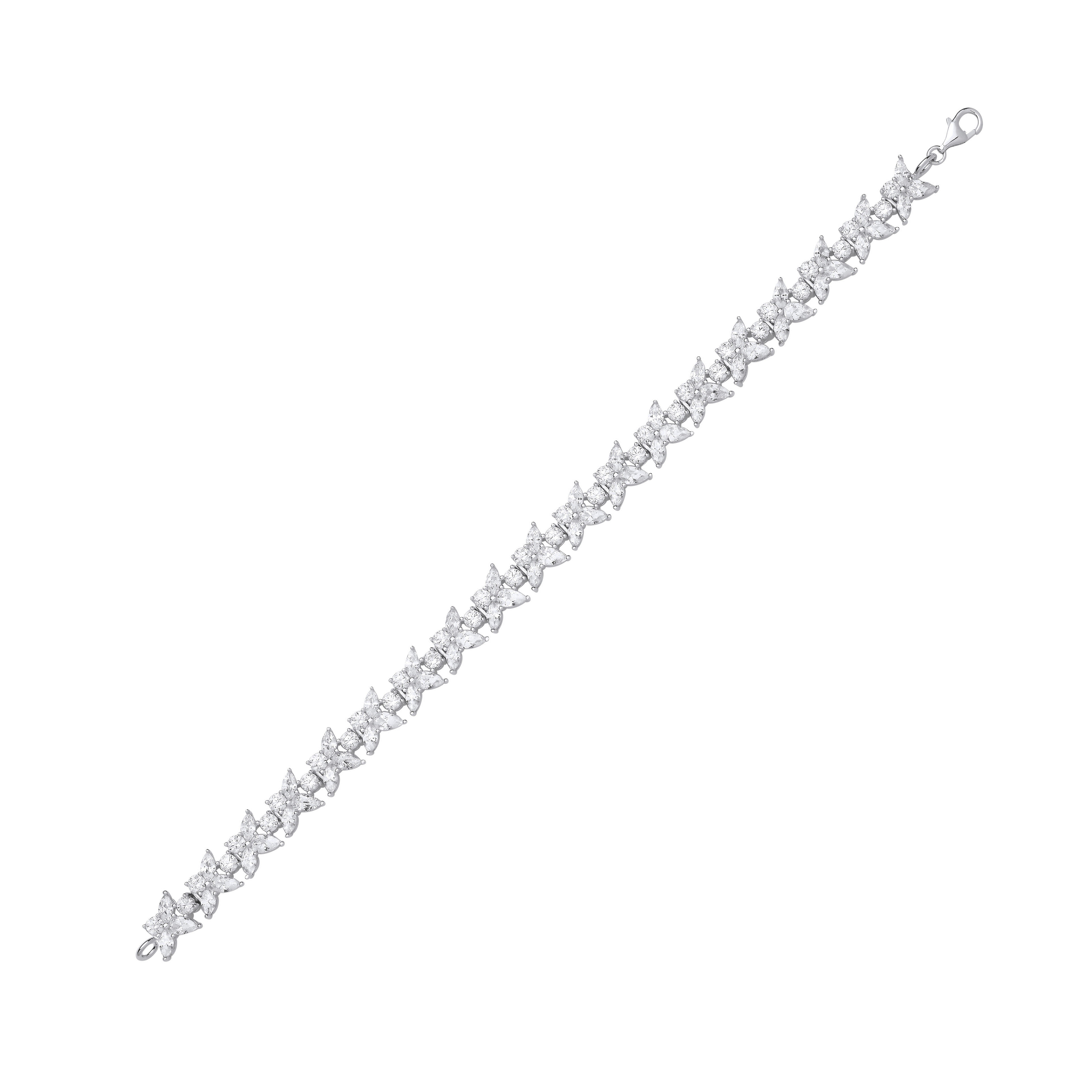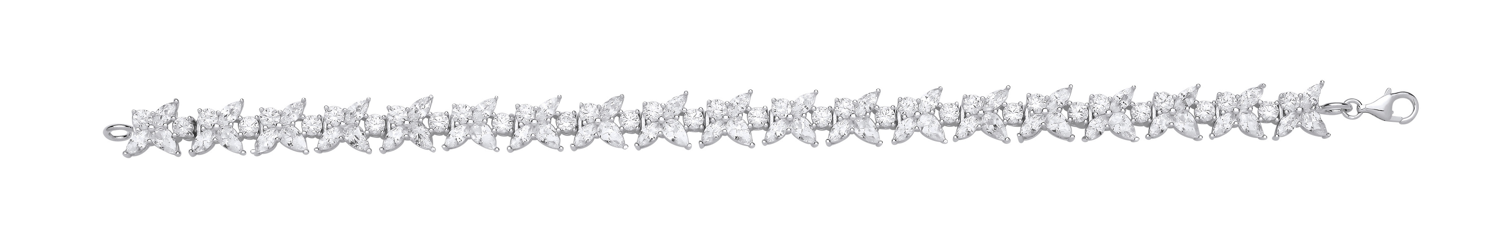 Silver CZ 3 Petal Flower Tennis Bracelet
