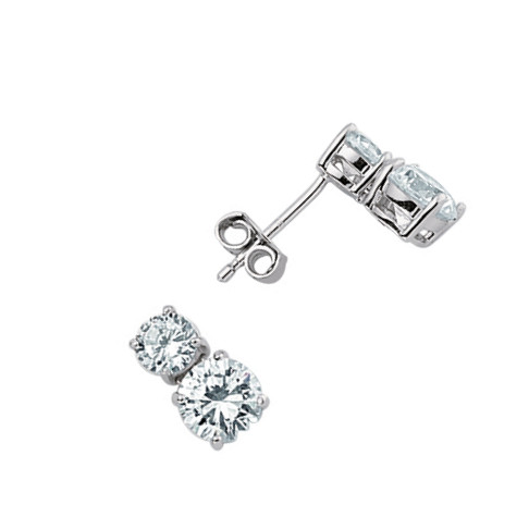 925 Sterling Silver Cubic Zirconia Two Stone Drop Stud Earrings