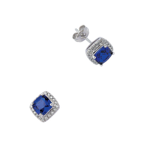Silver Cubic Zirconia Sapphire Princess Cut Stud Earrings