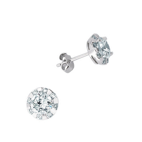 Silver Cubic Zirconia Round Halo Stud Earrings