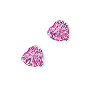6mm Pink Heart Stud Earrings