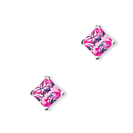 4mm Pink Square Silver Stud Earrings