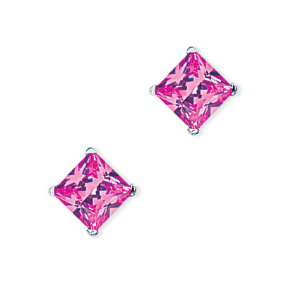 7mm Pink Square Silver Stud Earrings