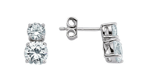 925 Sterling Silver Cubic Zirconia Two Stone Drop Stud Earrings