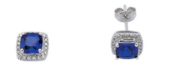 Silver Cubic Zirconia Sapphire Princess Cut Stud Earrings