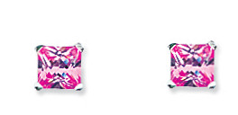 4mm Pink Square Silver Stud Earrings